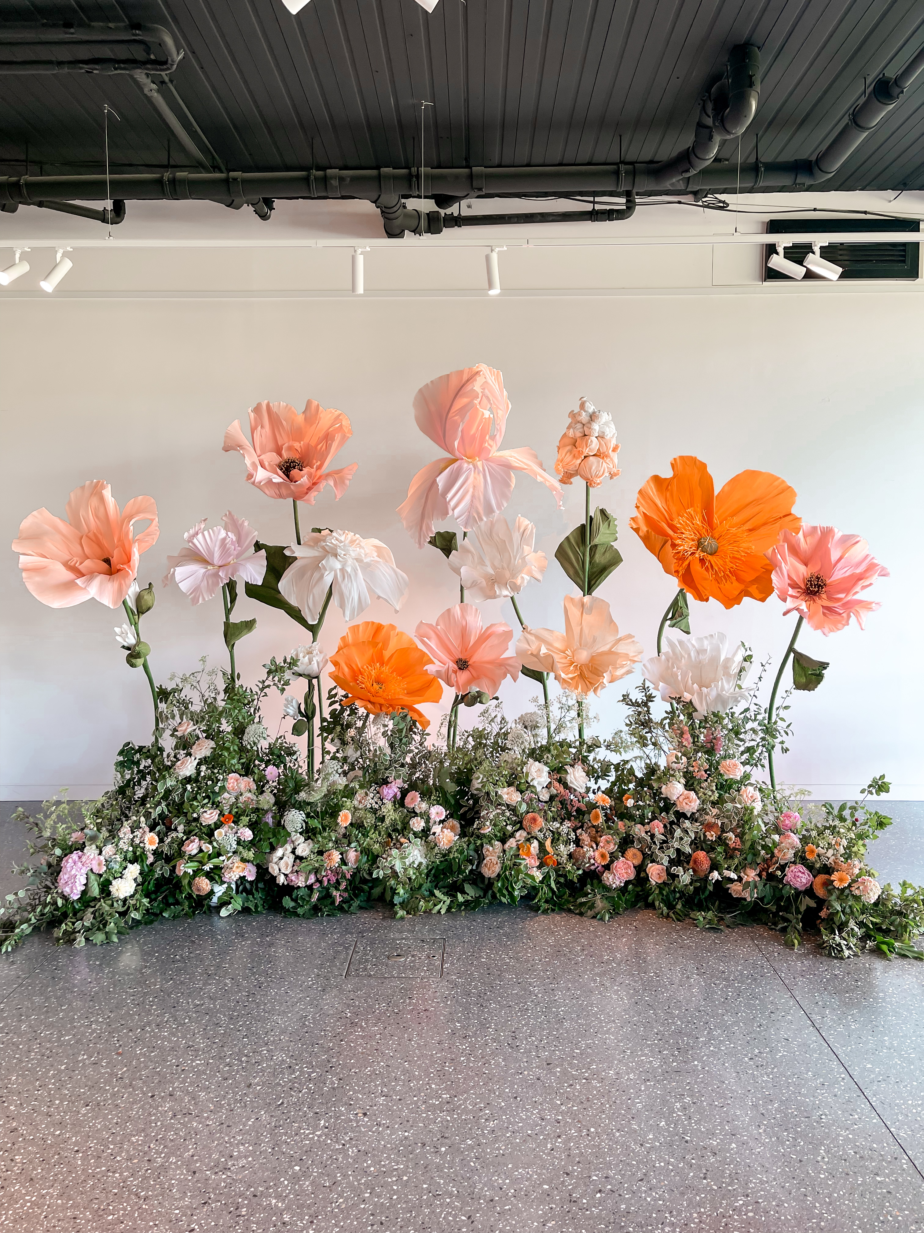 Giant paper flower hire and paper art installations, handmade in our studio. Available for events and activations across Brisbane, Gold Coast, and Queensland.